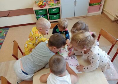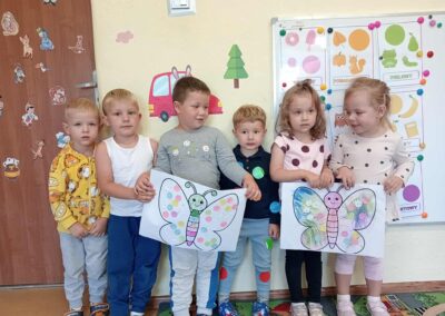 15 września Zerówka oraz Grupa Maluchów obchodziła szczególnie Dzień Kropki. Celem tego święta jest wzbudzanie kreatywności, pomysłowości i zachęcania dzieci do tworzenia i działania. Na zajęciach dzieci poznały genezę święta, uważnie wysłuchały opowiadania, jak to zwyczajna kropka zmieniła świat małej dziewczynki o imieniu Vashti. Dzieci uświadomiły sobie, że każdy ma jakiś talent. Dzień był wypełniony kolorowymi kropkami, które ukryte były w całej sali. Dzieci wykonały wspólnie fotoramkę oraz kropkowe sowy. Grupa maluchów przygotowała wspólnie motyle.