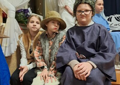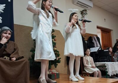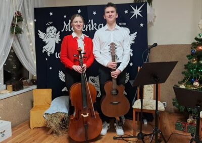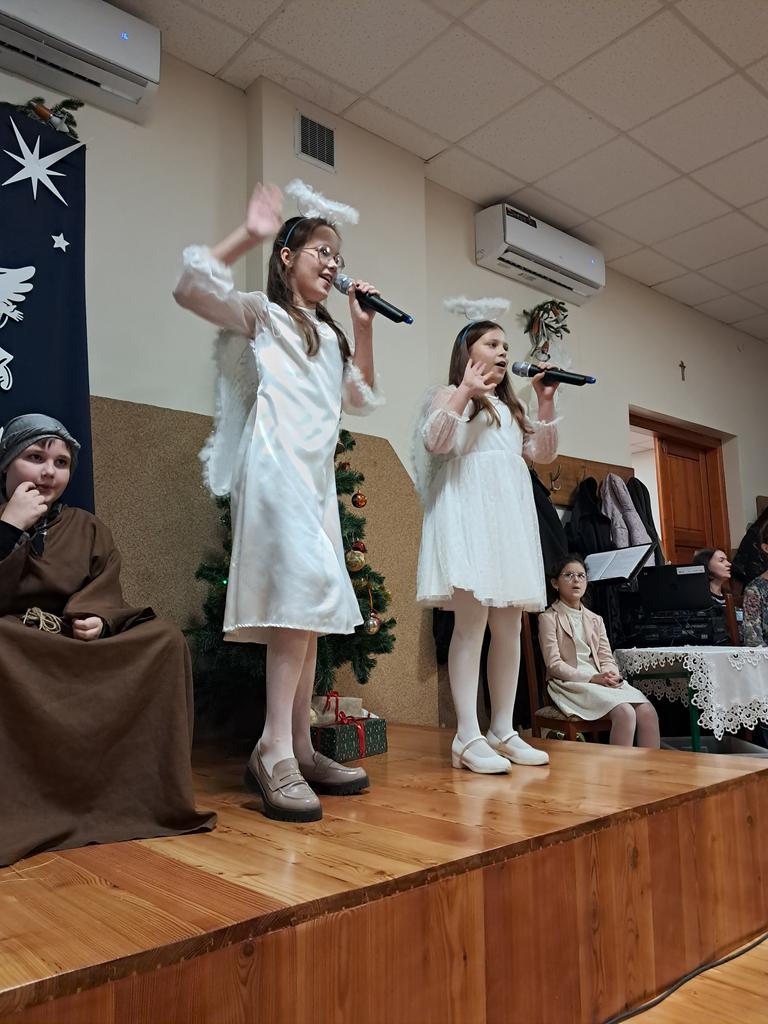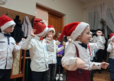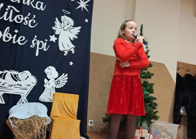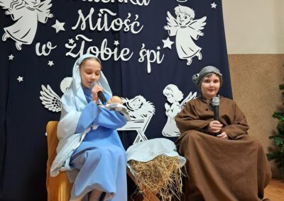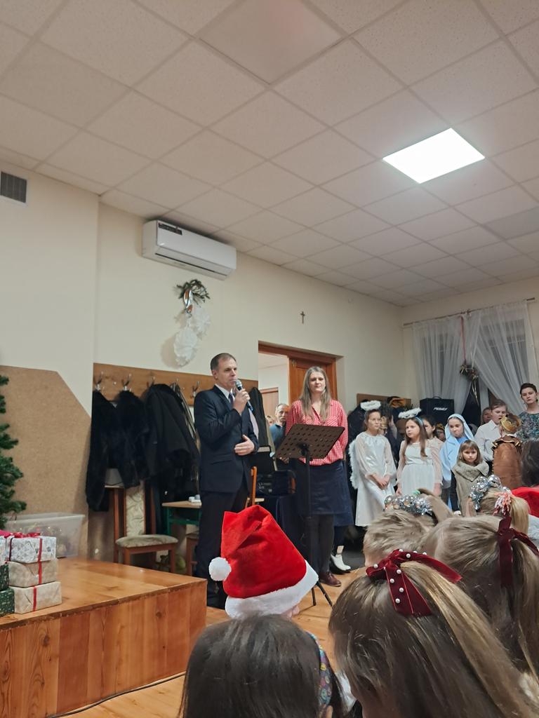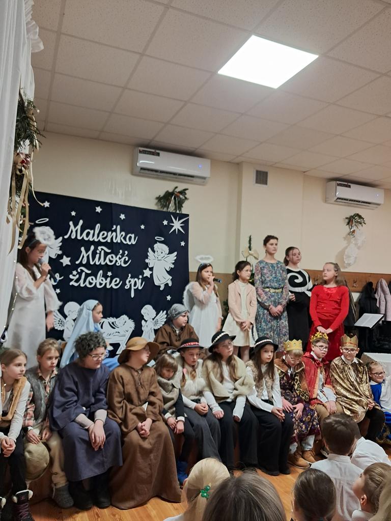 19 grudnia późnym popołudniem odbyła się II środowiskowa wigilia. Był to magiczny wieczór zorganizowany przez Radę Rodziców oraz Nauczycieli i Uczniów naszej Szkoły. Pani Dyrektor powitała zaproszonych gości a także złożyła życzenia. Po wysłuchaniu Ewangelii połamaliśmy się opłatkiem i z wielkim wzruszeniem obejrzeliśmy występy naszych uczniów, którzy przedstawili nam historię Bożego Narodzenia. Kolejnym punktem świątecznego spotkania była loteria świątecznych ozdób oraz wspólne kolędowanie, które poprowadził zespół ZaKlePie-my.