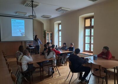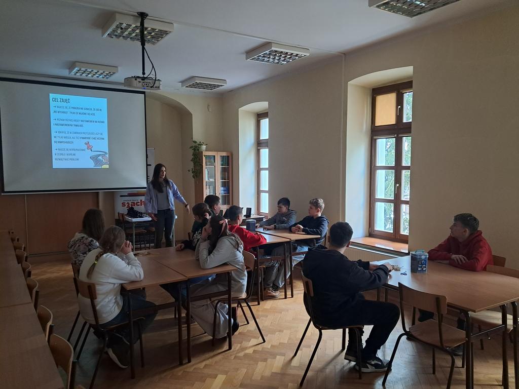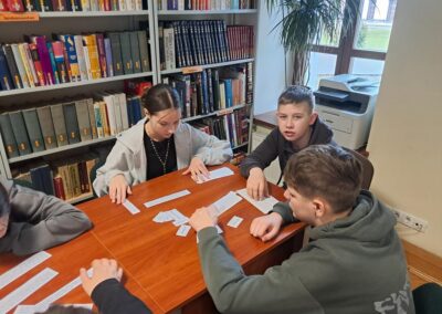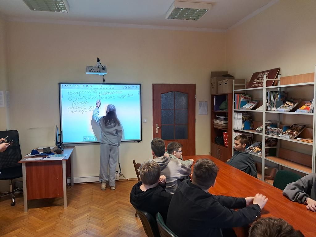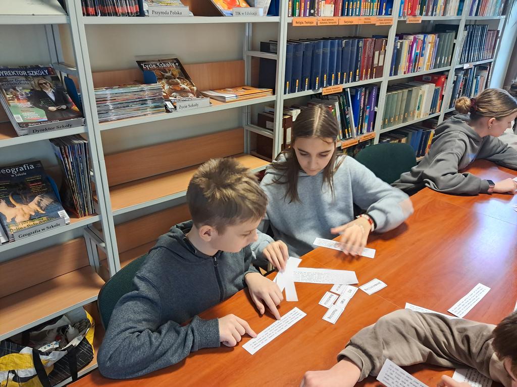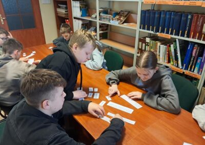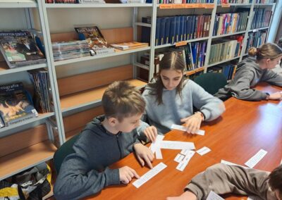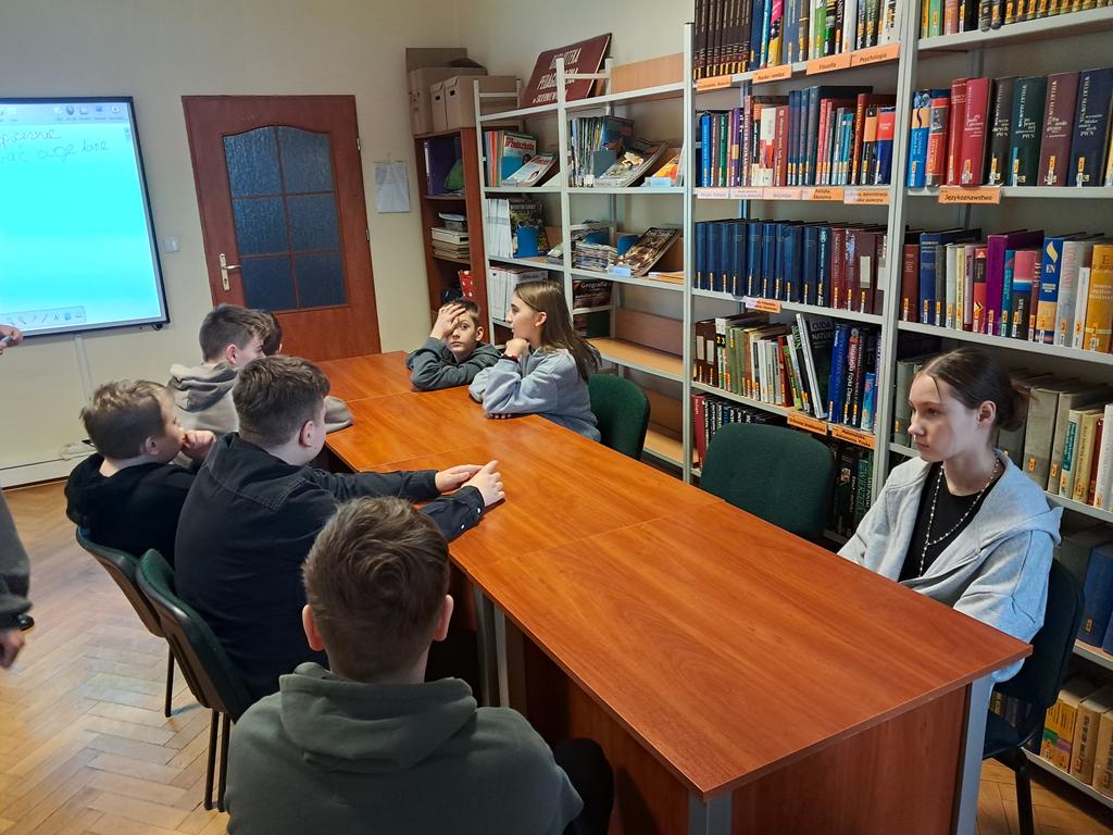 W środę 25 lutego 2026 roku klasy VI i VII wybrały się do Biblioteki Pedagogicznej w Skierniewicach na lekcje biblioteczne. Uczniowie klasy VI wzięli udział w zajęciach pt. „Bezpieczni w sieci – mądrzy użytkownicy internetu”, podczas których poznali zasady bezpiecznego korzystania z internetu. Klasa VII brała udział w zajęciach pt. „Jak nie zgubić się na rynku pracy”. Dzięki nim uczniowie poznali swoje możliwości dotyczące wyboru zawodu. Dziękujemy paniom Annie Kowalczyk i Sylwii Gajda za interesujące zajęcia.