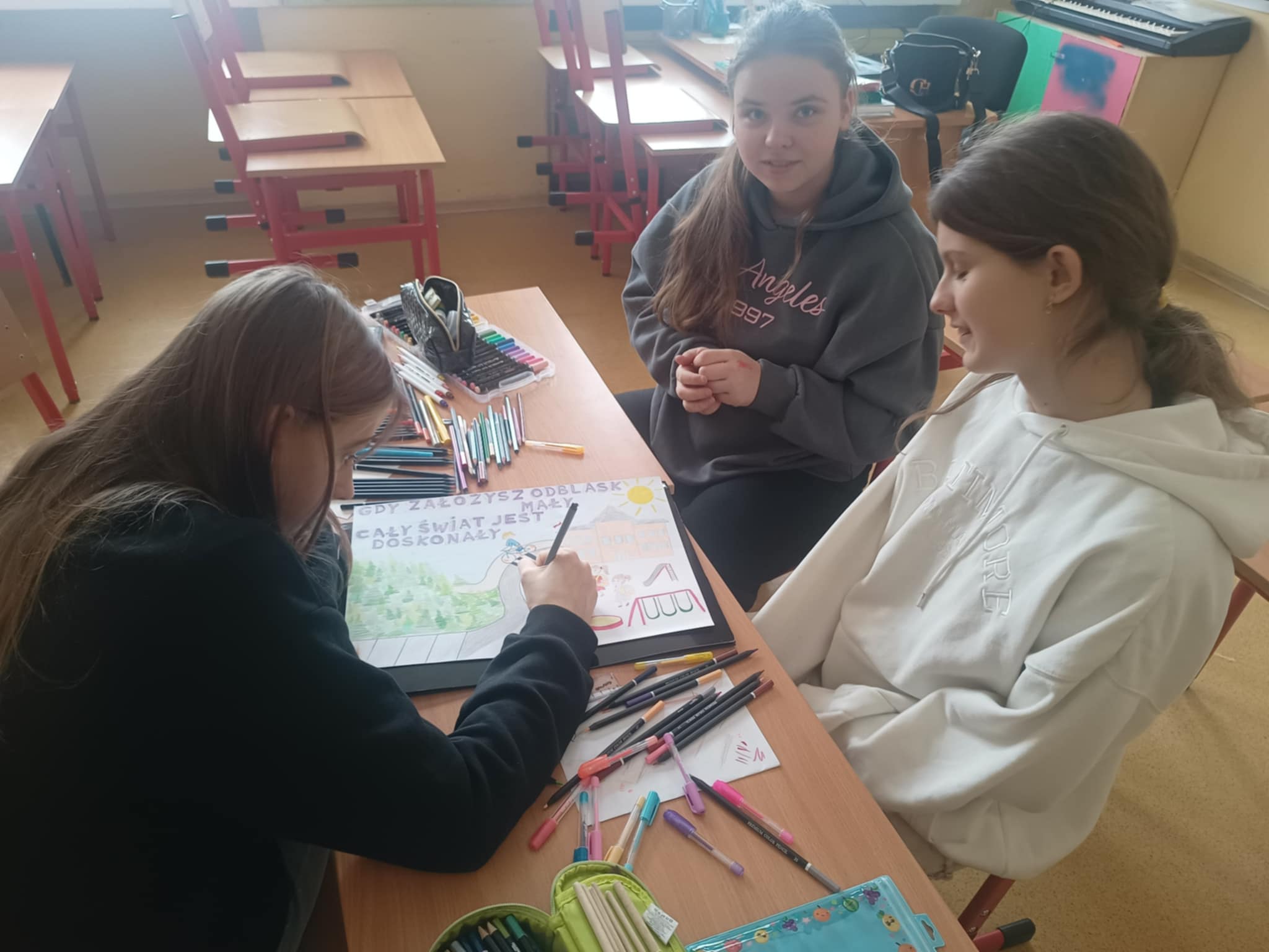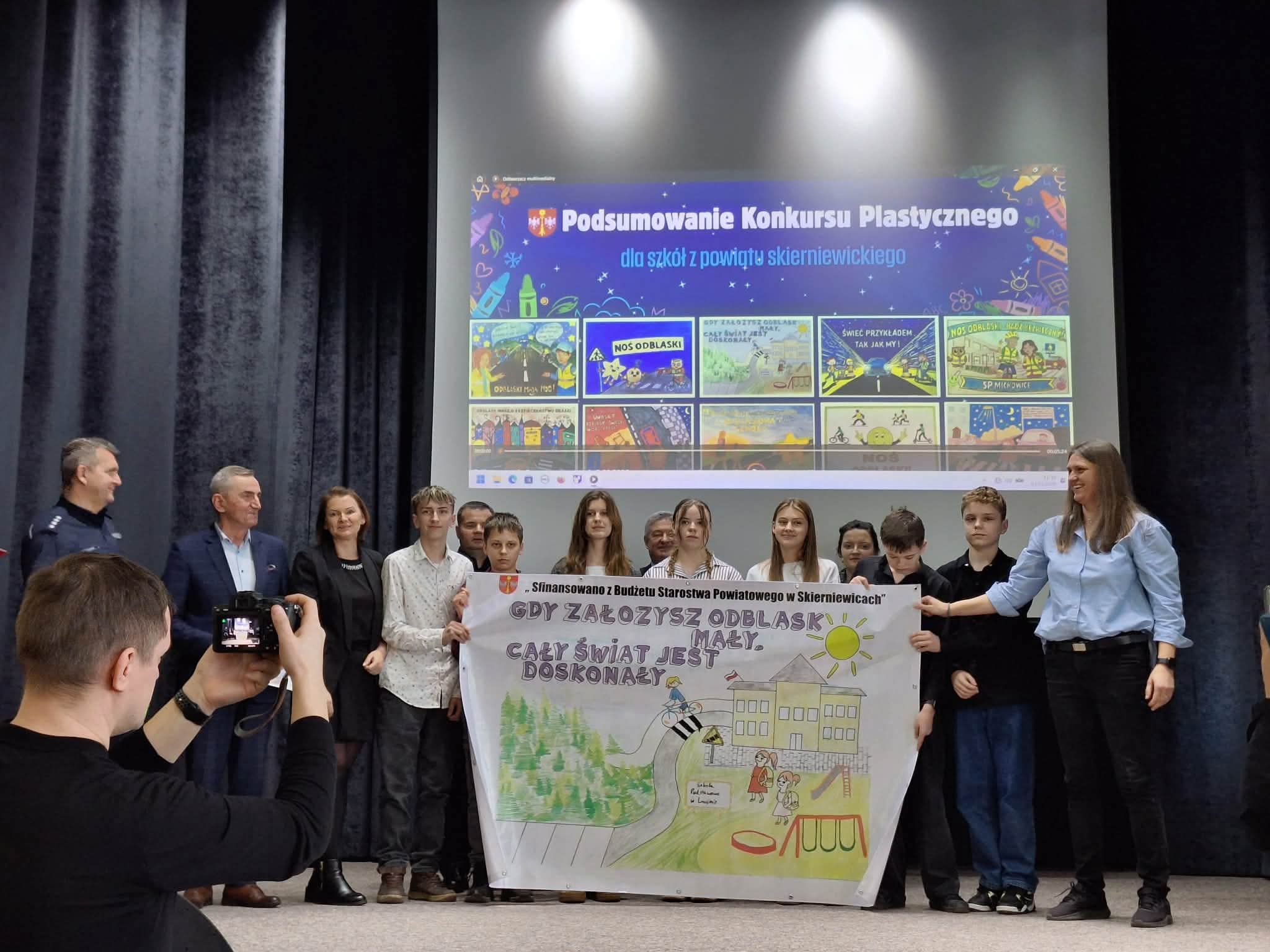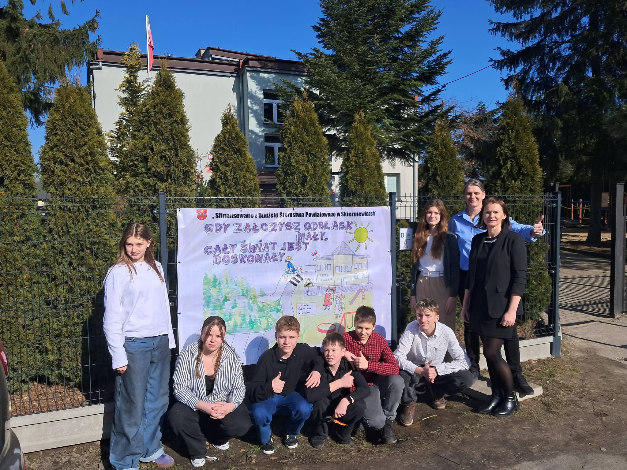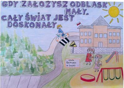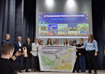 Ucznowie klasy VII wraz z opiekunem Panią Dorotą Bartosik wzięli udział w konkursie „Odblaskowa szkoła”, zorganizowanym przez Starostwo Powiatowe w Skierniewicach i Szkołę Podstawową im. Armii Krajowej w Trzciannie którego celem było promowanie zasad bezpieczeństwa w ruchu drogowym oraz upowszechnianie noszenia elementów odblaskowych. Działania konkursowe zachęcały uczniów i nauczycieli do wspólnego zaaangażowania na rzecz poprawy bezpieczeństwa dzieci i młodzieży. W ramach konkursu uczniowie rozwijali swoją kreatywność, wyobraźnię plastyczną oraz umiejętność współpracy. Udział w projekcie przyczynił się do zwiększenia świadomości znaczenia elementów odblaskowych dla bezpieczeństwa wszystkich uczestników ruchu drogowego. Uroczyste podsumowanie konkusrsu odbyło się 3 marca w Starostwie Powiatowym w Skierniewicach.