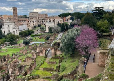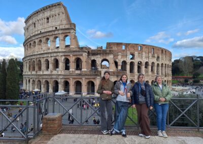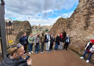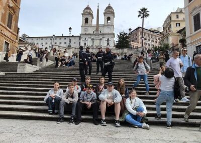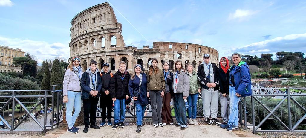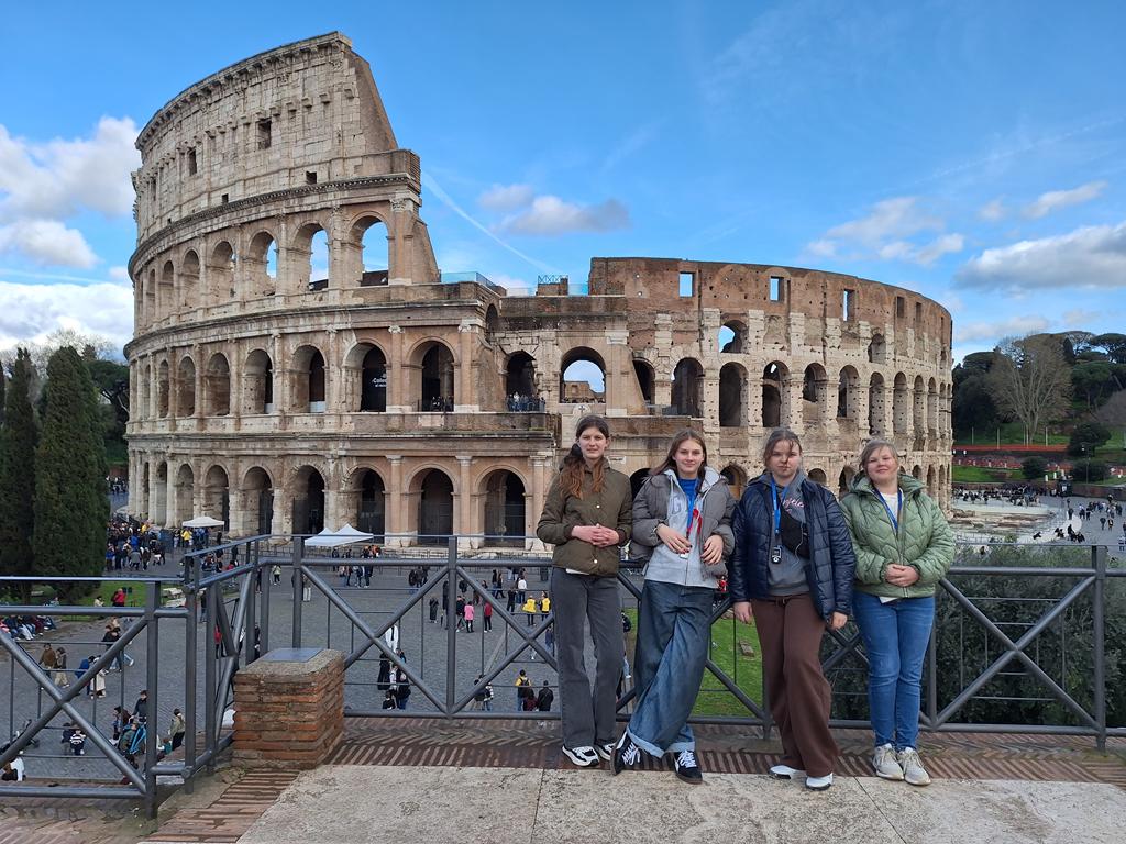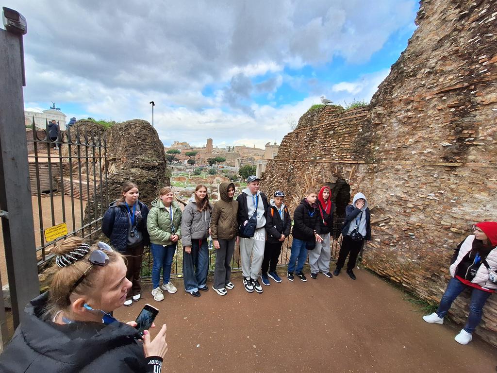 Podróż rozpoczęła się w sobotę, 14 marca wczesnym rankiem wylotem z lotniska Warszawa-Modlin. Już około południa grupa udała się na odkrywanie uroków Wiecznego Miasta, zaczynając od imponującego Ołtarza Ojczyzny. Następnym punktem było wyjątkowe, czterogodzinne spotkanie ze starożytnością. Pod opieką przewodniczki uczestnicy poznali najważniejsze miejsca antycznego Rzymu – Forum Romanum, Palatyn oraz Koloseum. Uczniowie mieli okazję na własne oczy zobaczyć miejsca, które dotąd znali jedynie z podręczników historii i poczuć atmosferę Rzymu z okresu cesarstwa.