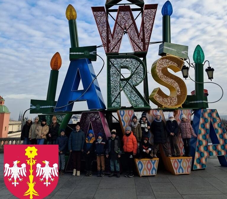 W poniedziałek 8 grudnia uczniowie klas I- VII wybrali się na wycieczkę do Warszawy w ramach projektu Starostwa Powiatowego ze Skierniewic „Wyjście z klasą”. Punkt pierwszy wyjazdu to tradycyjnie zwiedzanie Starego Miasta m.in Kolumna Zygmunta, pomnik Syrenki, pomnik Adama Mickiewicza, Kościół Świętego Jana, pomnik Małego Powstańca, Kamienica, gdzie mieszkała Maria Skłodowska – Curie a także Legendarny Bazyliszek. Spacerowaliśmy Krakowskim Przedmieściem mijając Pałac Prezydencki, Uniwersytet Warszawski. Pani Celina pełniła rolę przewodnika po Starym Mieście, wspaniale opowiadając uczniom o najważniejszych miejscach w Stolicy. Następnie udaliśmy się na warsztaty w Wilanowie. Klasy I- II robiły karoce. Klasy III- IV wybijały monety, natomiast klasy V-VII brały udział w nauce tańca, który tańczono na balach królewskich. Po warsztatach Panie Przewodniczki oprowadziły dzieci po Pałacu Króla Jana III Sobieskiego przekazując szereg ciekawostek na temat jego życia. Ostatnią atrakcją było oglądanie iluminacji świetlnych w Królewskim Ogrodzie Świateł. Pełni wrażeń oraz inspiracji wróciliśmy późnym wieczorem do naszej szkoły. To była bardzo interesująca, pełna historii wycieczka.